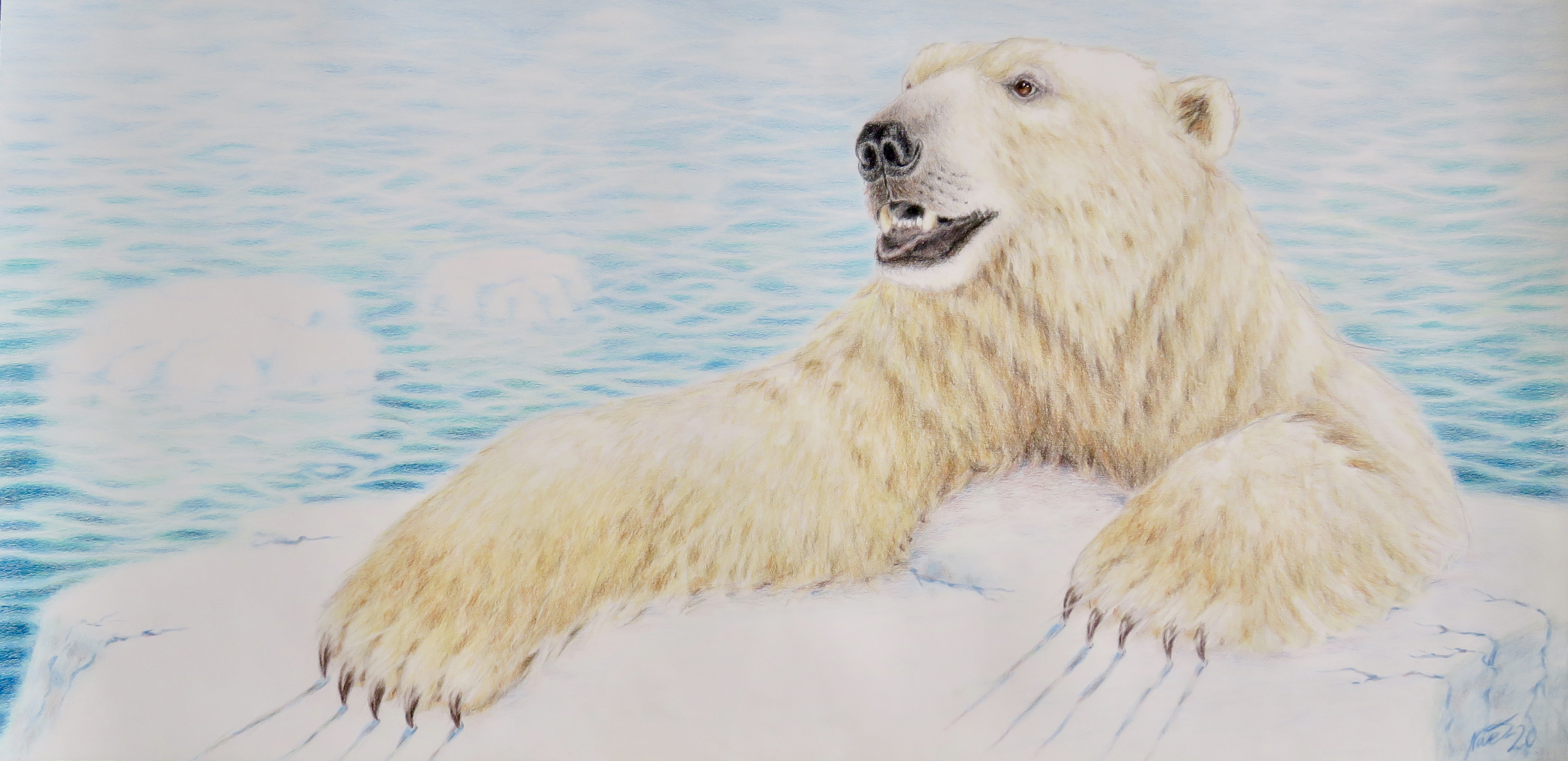 «Den siste isen» fargeblyant, 88 x 44 cm.