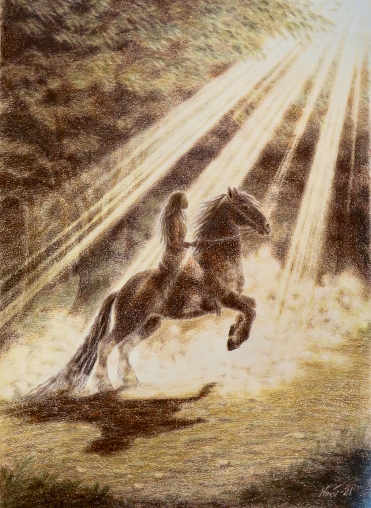 «Brego».Dølahest. Fargeblyant, 25 x 36 cm.