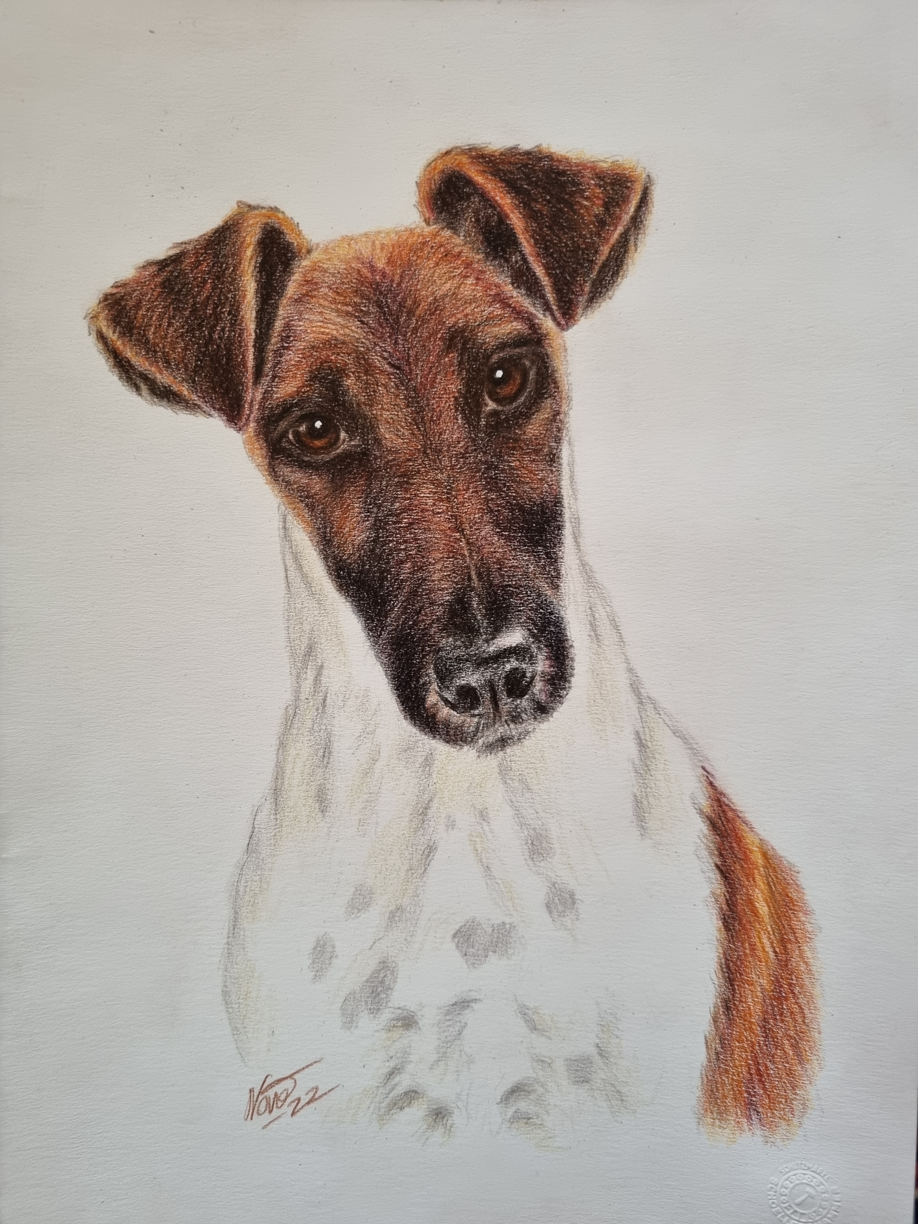 «Lenny» smooth fox terrier. «Oh my goodness! He is exquisite. I am more than pleased and my husband is going to be so happy. I am over the moon with this gorgeous drawing of our boy. Thank you, Tonje!!» -Jennifer