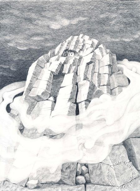 «Eremittfjellet». Blyant, 1989. Noe større enn A4 format. Til slags kr. 2800,- uten ramme. Inkl. ramme 3800,-