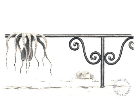«Blekksprut til tørk på Gresk strand». Blyant, 1989.