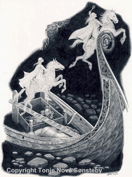 «Vikinggrav». Blyant, 1989. Noe større enn A4 format. Til slags kr. 2800,- uten ramme. Inkl. ramme 3800,-