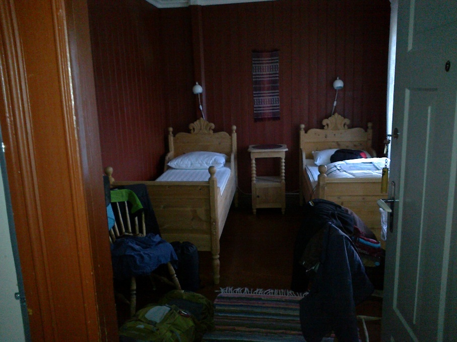 På Fokstugu får vi en liste hvor vi kan krysse av for hva vi ønsker oss å spise, en slags handleliste. Etterpå kommer vertinna med varene i en kurv. Jeg blir bedt om å legge igjen saltaskene på utsiden av huset, på trappa hvor regnet for øvrig aldri regner, fordi når det regner kommer vinden alltid fra en annen kant og da ligger trappa i le. Det er naturligvis mye og skiftende vær på Dovre, og de som har bygd og de som bor her kjenner forholdene og vet å innrette seg etter det. Men altså, på grunn av allergener fra hesten får tingene mine ligge ute, og jeg tar bare det viktigste med inn. På innsiden av døren står en skohylle med innesko som alle må bruke. Samtidig med oss var det flere ornitologer som visstnok var stamgjester, de var kommet for å studere og fotografere fuglelivet.