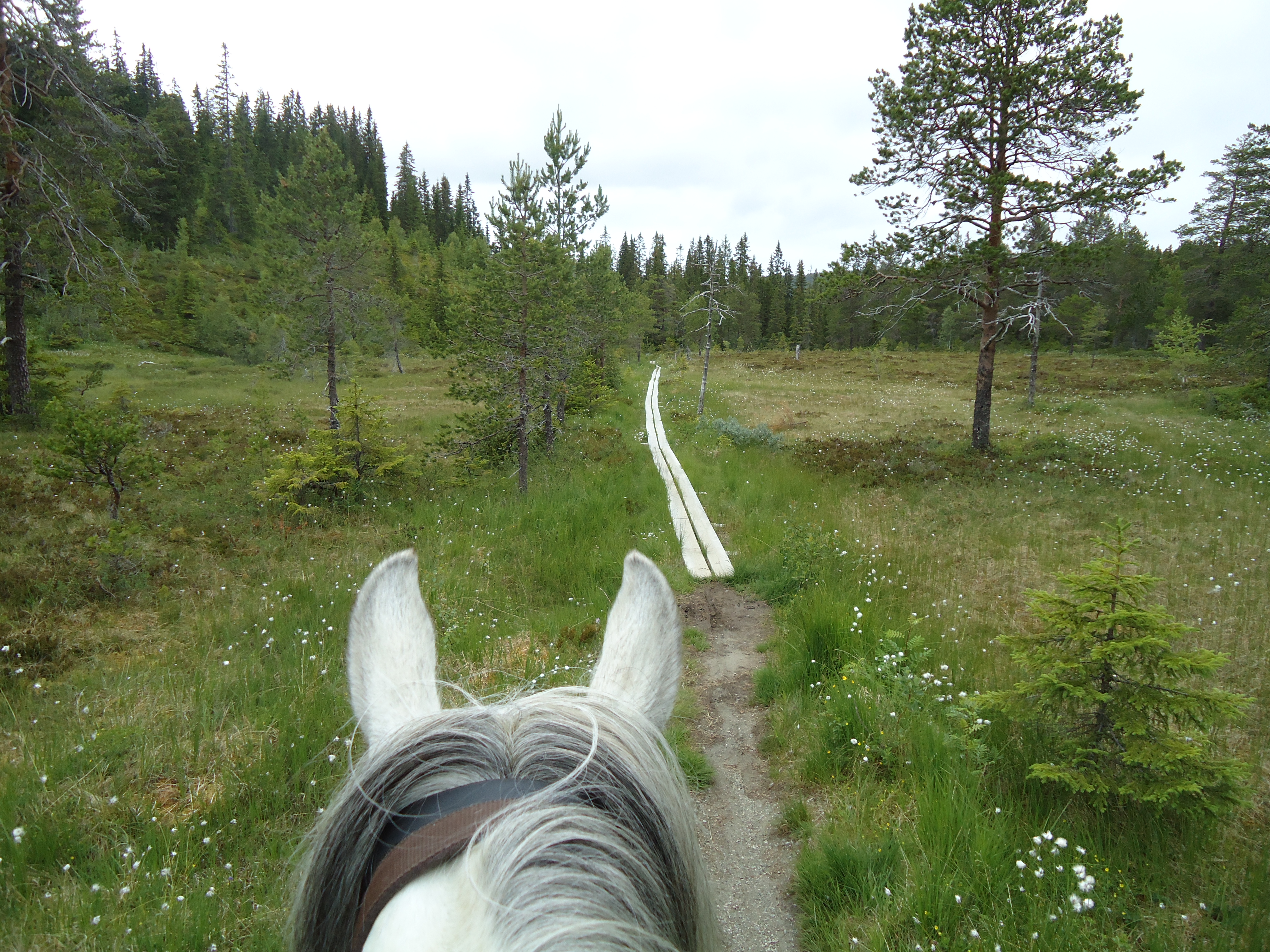 Med hest er dette en helt grei etappe å ri. Like etter Snefugl gård er et bratt stykke, der er det like greit å følge veien (fylkesvei 801) i underkant av 1 km ned mot E39.
