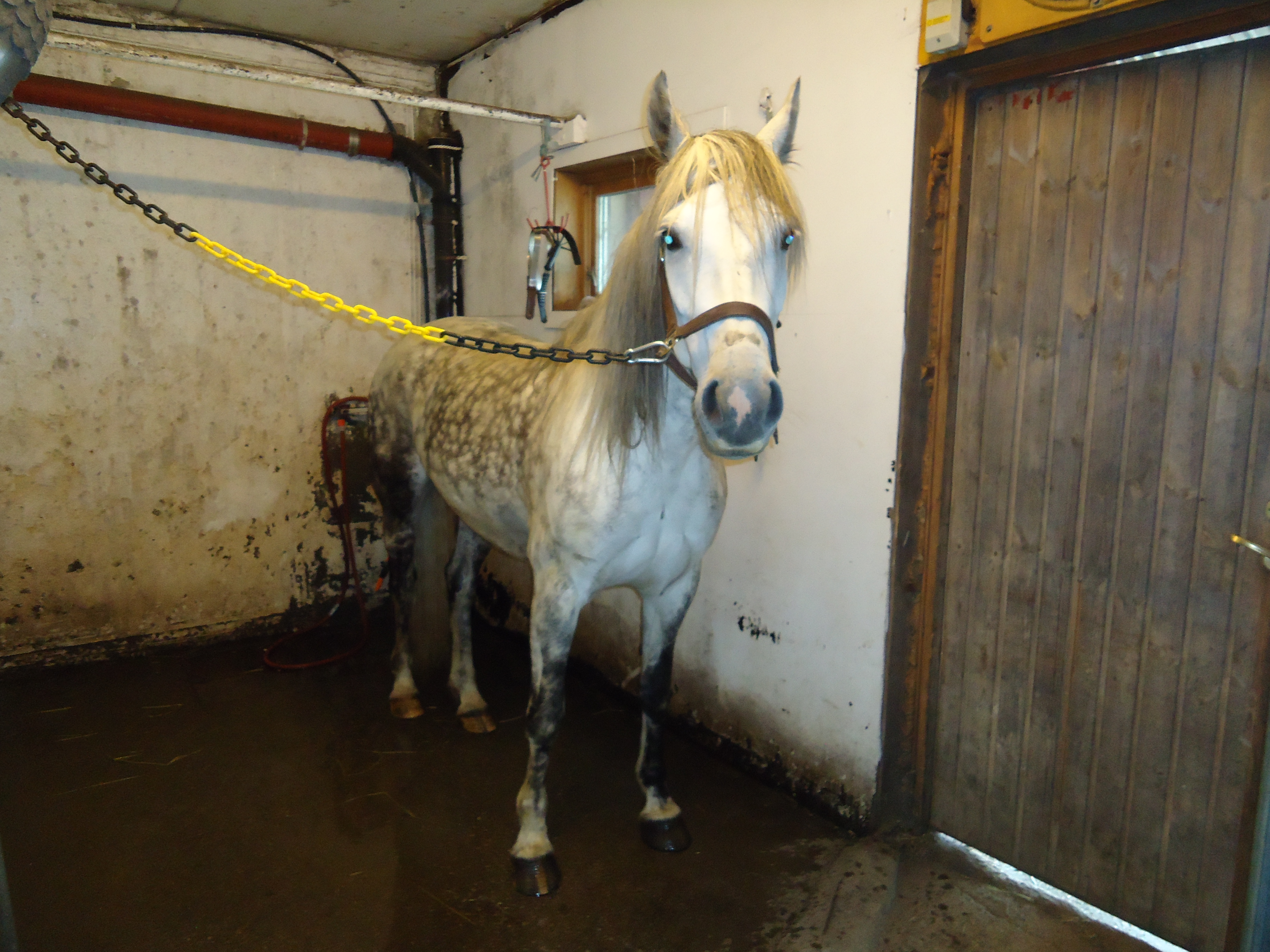 Fremme på Vådan gård venter en stor boks med torvstrø og masse høy, Octhavia får en dusj i vaskespilt for første gang i sitt liv, og tar det med stor ro. Etter at hun har fått tørket pelsen litt kommer hun ut i paddock ved siden av to skimler og kan kose seg resten av kvelden. Da kan jeg ta det med ro også. Først hesten, så meg.