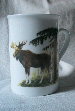 «Elg i Norsk landskap» – illustrasjon på krus, bestilt av Norsk Dekordesign A/S